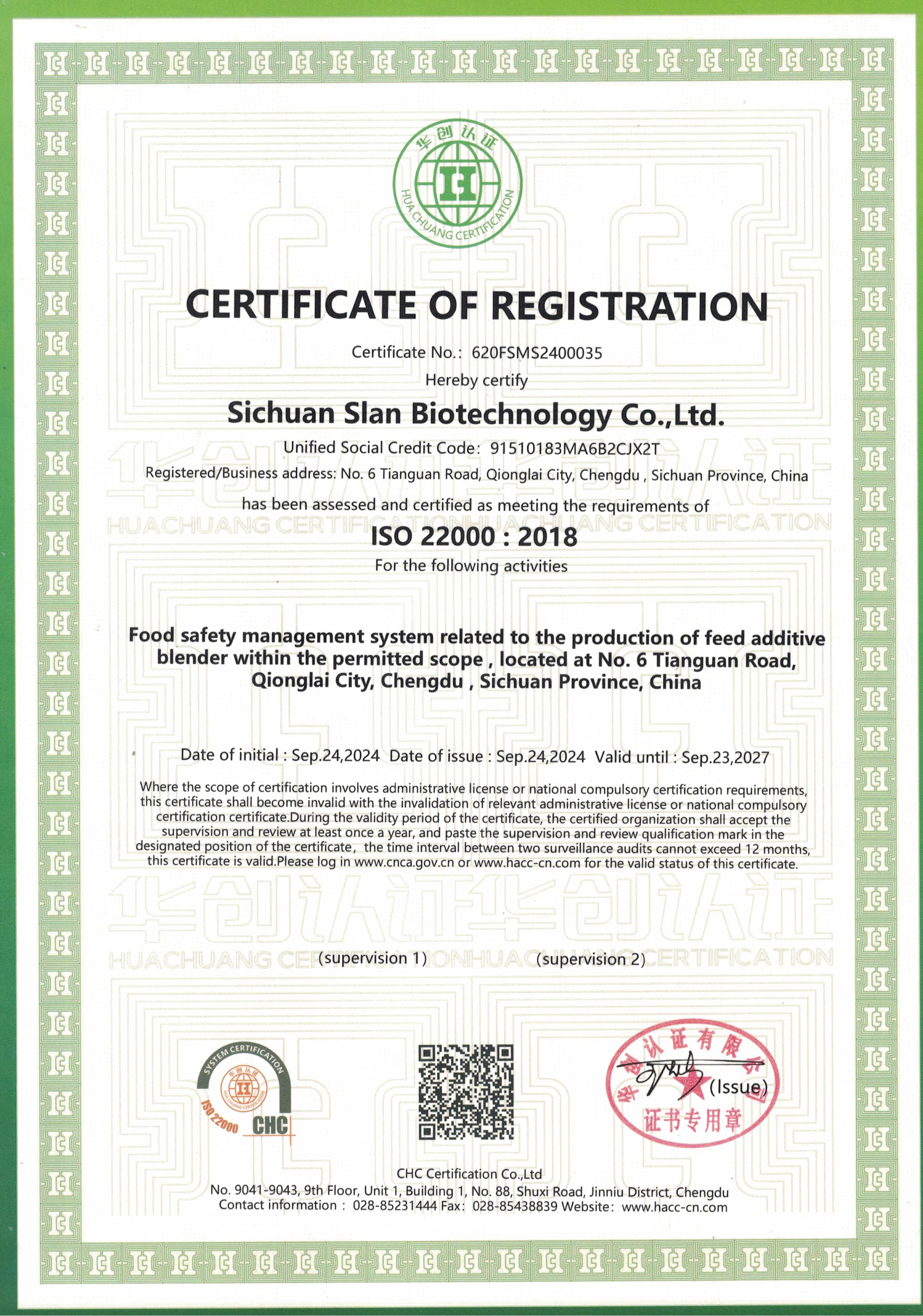 華創(chuàng)認(rèn)證有限公司的審核組分別從體系運(yùn)行、程序文件、原料驗(yàn)收、生產(chǎn)過(guò)程、產(chǎn)品檢測(cè)、物流運(yùn)輸、模擬召回等食品安全管理體系全流程進(jìn)行了檢查。對(duì)我司食品安全管理全過(guò)程中全體人員的配合、監(jiān)督方案的制定實(shí)施、食品安全管理體系的建設(shè)給予了肯定,認(rèn)為符合標(biāo)準(zhǔn)要求,并于2024年9月24日為我司頒發(fā)了“食品安全管理體系認(rèn)證證書”